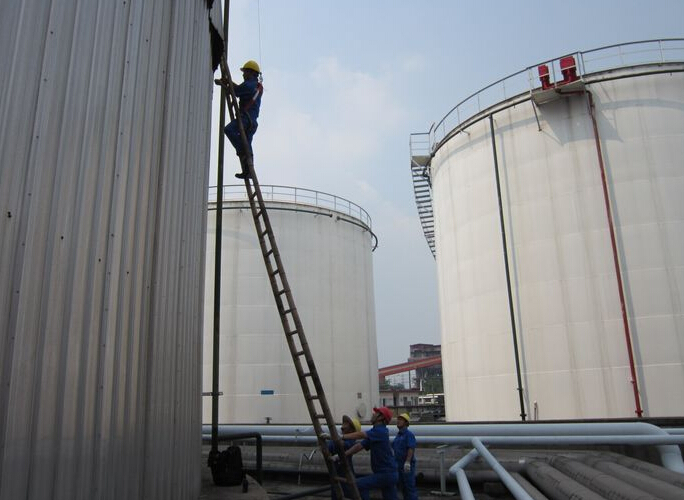 高空維修作業在離地面約6米的罐壁進行,落實安全措施時,維修人員按要求正確使用差速防墜器。高空作業安全有了可靠的保障,維修工作得以順利進行,7月31日,保溫層金屬鋁皮的修復及部分鉚口開離的加固工作順利完成。